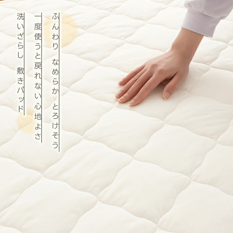 肌に触れる表生地にはピーチスキン加工でしっとりとした風合い。さらに、洗いざらし加工をすることでやわらかな手触りとなっています。抗菌・防臭・防ダニ加工。丸洗いOKです。