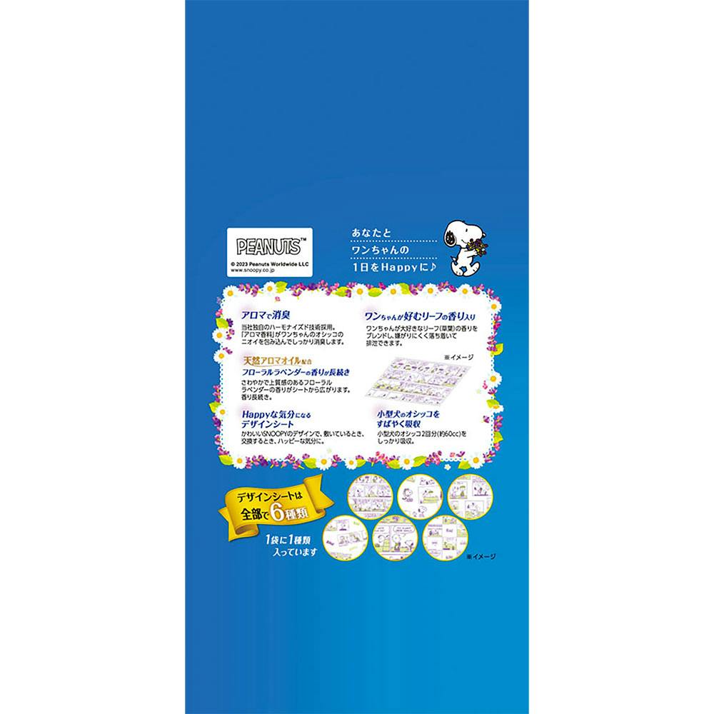・アロマで消臭当社独自のハーモナイズド技術採用。「アロマ香料」がワンちゃんのオシッコのニオイを包み込んでしっかり消臭します。 ・ワンちゃんが好むリーフの香り入りワンちゃんが大好きなリーフ(草葉)の香りをブレンドし、嫌がりにくく落ち着いて排泄できます。 ・天然アロマオイル配合フローラルラベンダーの香りが長続き さわやかで上質感のあるフローラル ラベンダーの香りがシートから広がります。香り長続き。 ・小型犬のオシッコを素早く吸収:小型犬のオシッコ2回分(約60cc)をしっかり吸収。