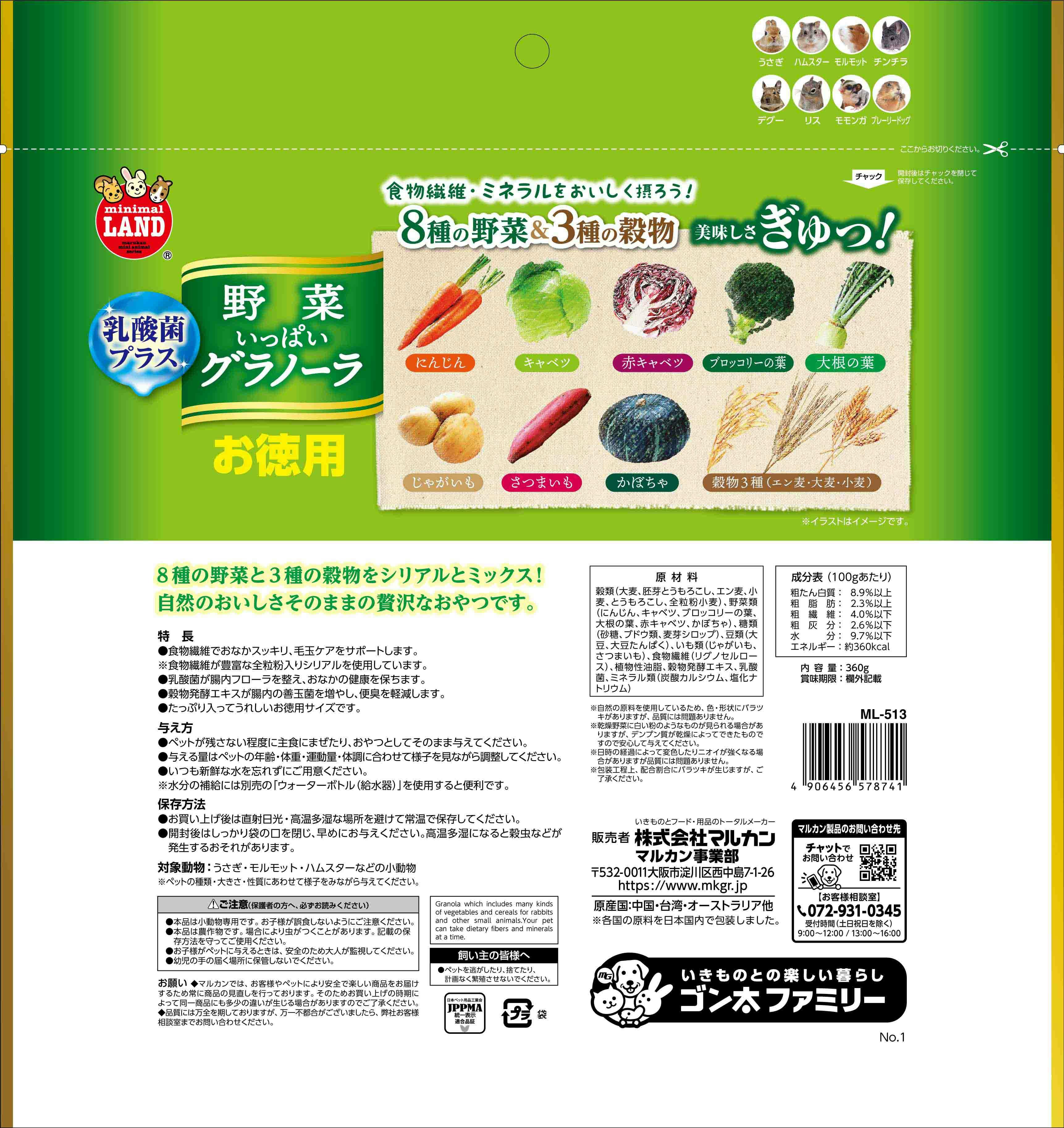 ML-513 野菜いっぱいグラノーラ お徳用 360g 鳥小動物フード 小動物おやつ 4906456578741【別送品】