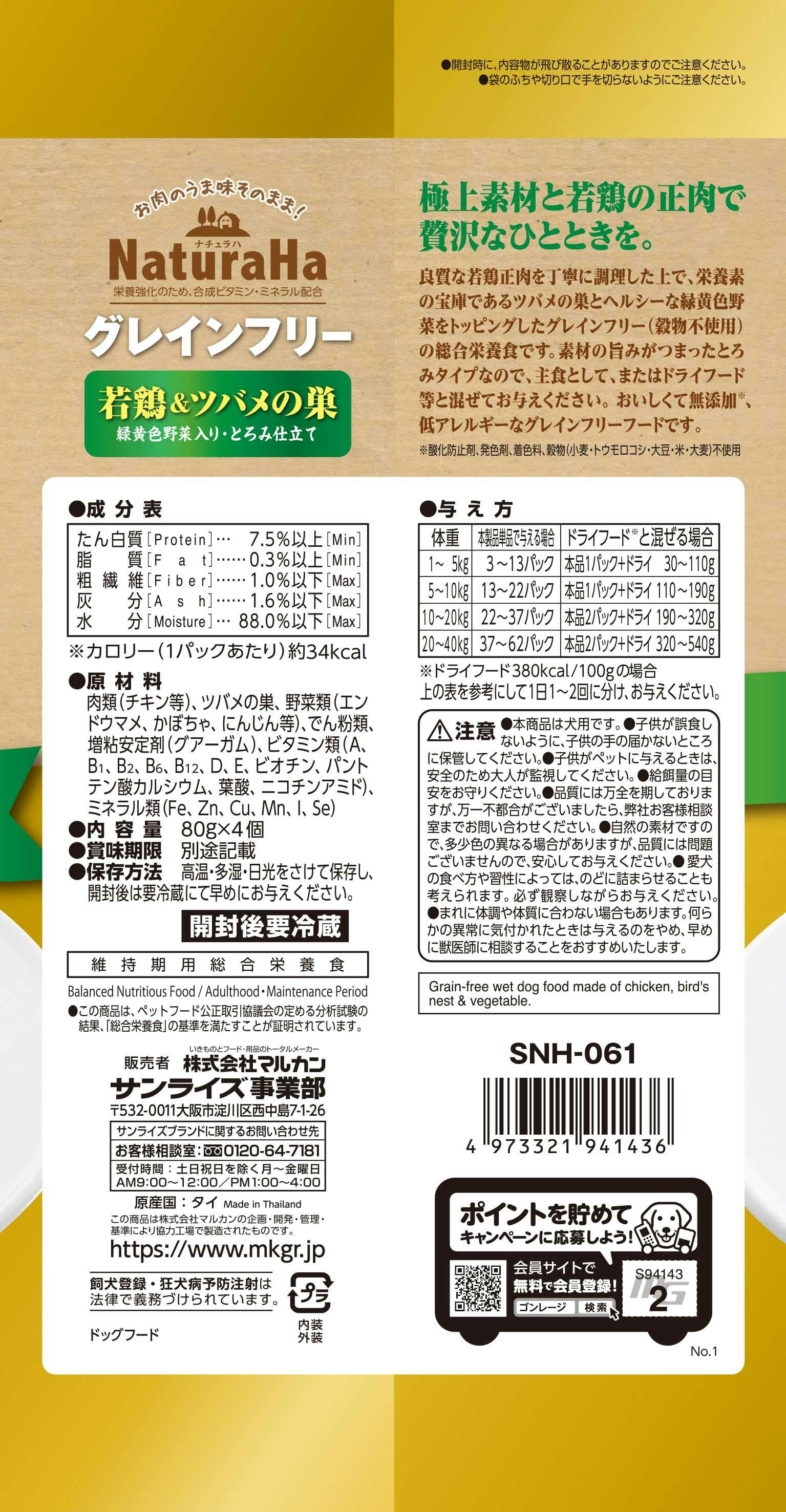 ナチュラハ グレインフリー Premium 若鶏&ツバメの巣 緑黄色野菜入り・とろみ仕立て 4個 ドッグフード (カンヅメ) 総合栄養食 ウェットフード 4973321941436【別送品】