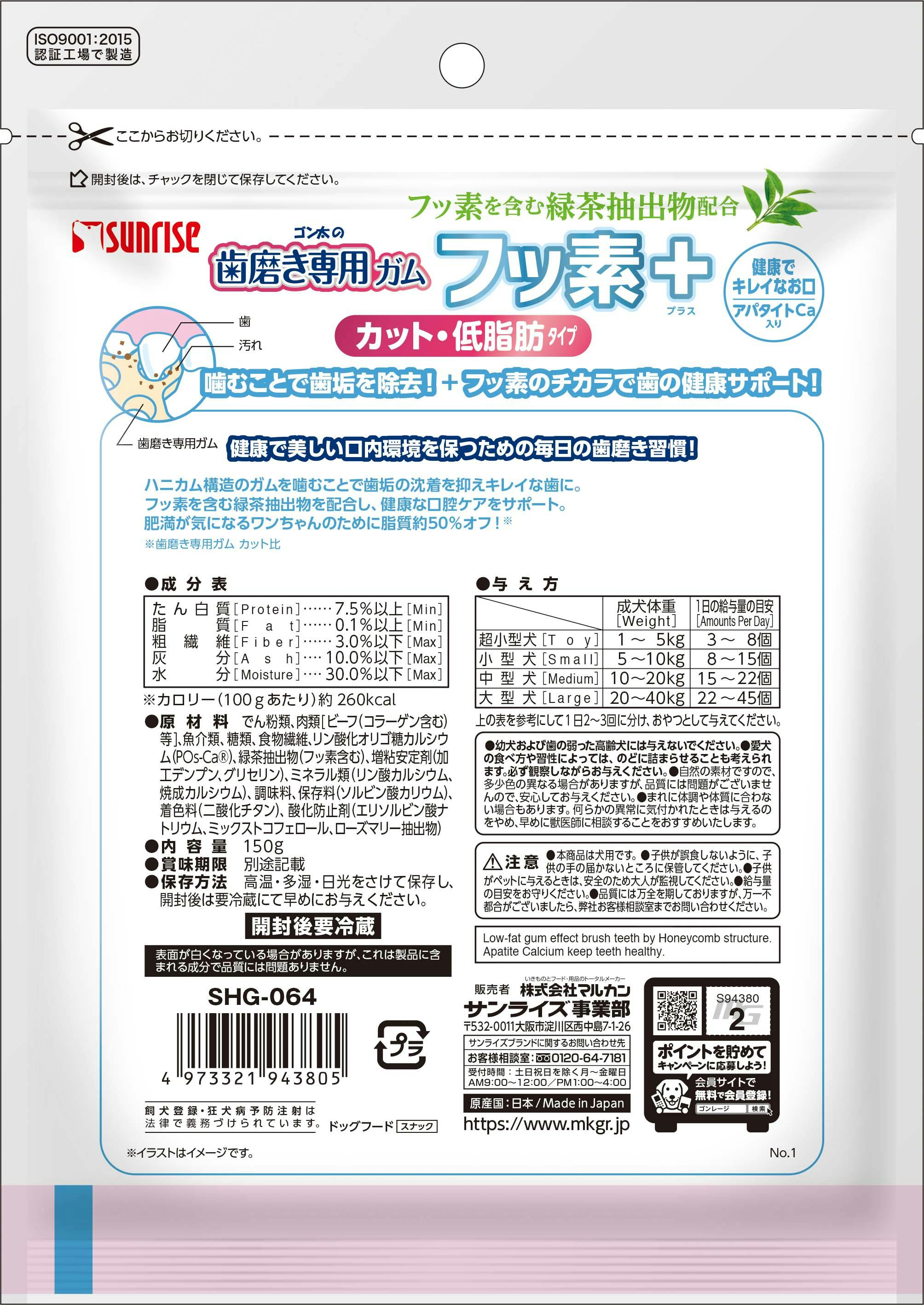 ゴン太の歯磨き専用ガム フッ素プラス カット アパタイトカルシウム入り 低脂肪 150g 犬おやつ【別送品】
