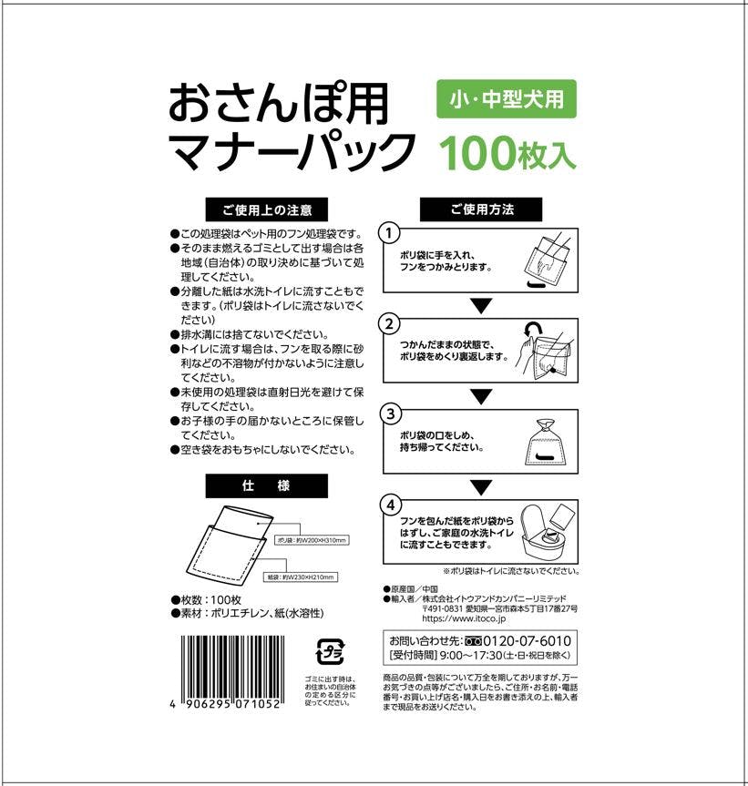 おさんぽ用マナーパック 100枚 おでかけ マナー対策 4906295071052【別送品】