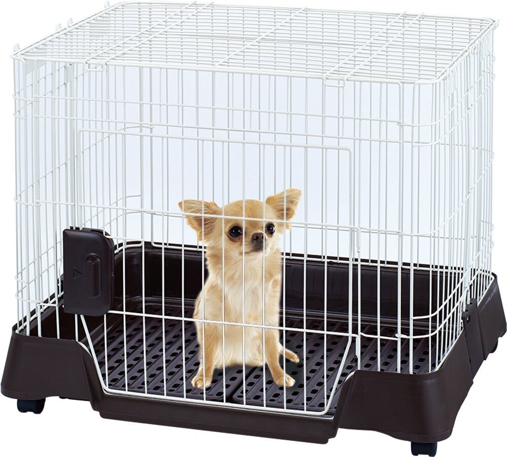 ◯すのこ付き底トレイでペットシーツをカバー◯汚れが飛び散りにくい深型底トレイ◯大きな扉で便利◯工具不要、キャスター付 超小型犬・小型犬(~8kgまで)対応