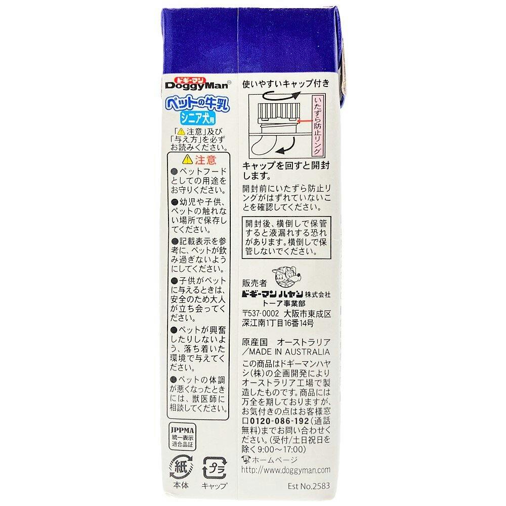 【ケース販売】ペットの牛乳シニア犬用 250ML(1ケース24個入) ご褒美用 4970096931150【別送品】