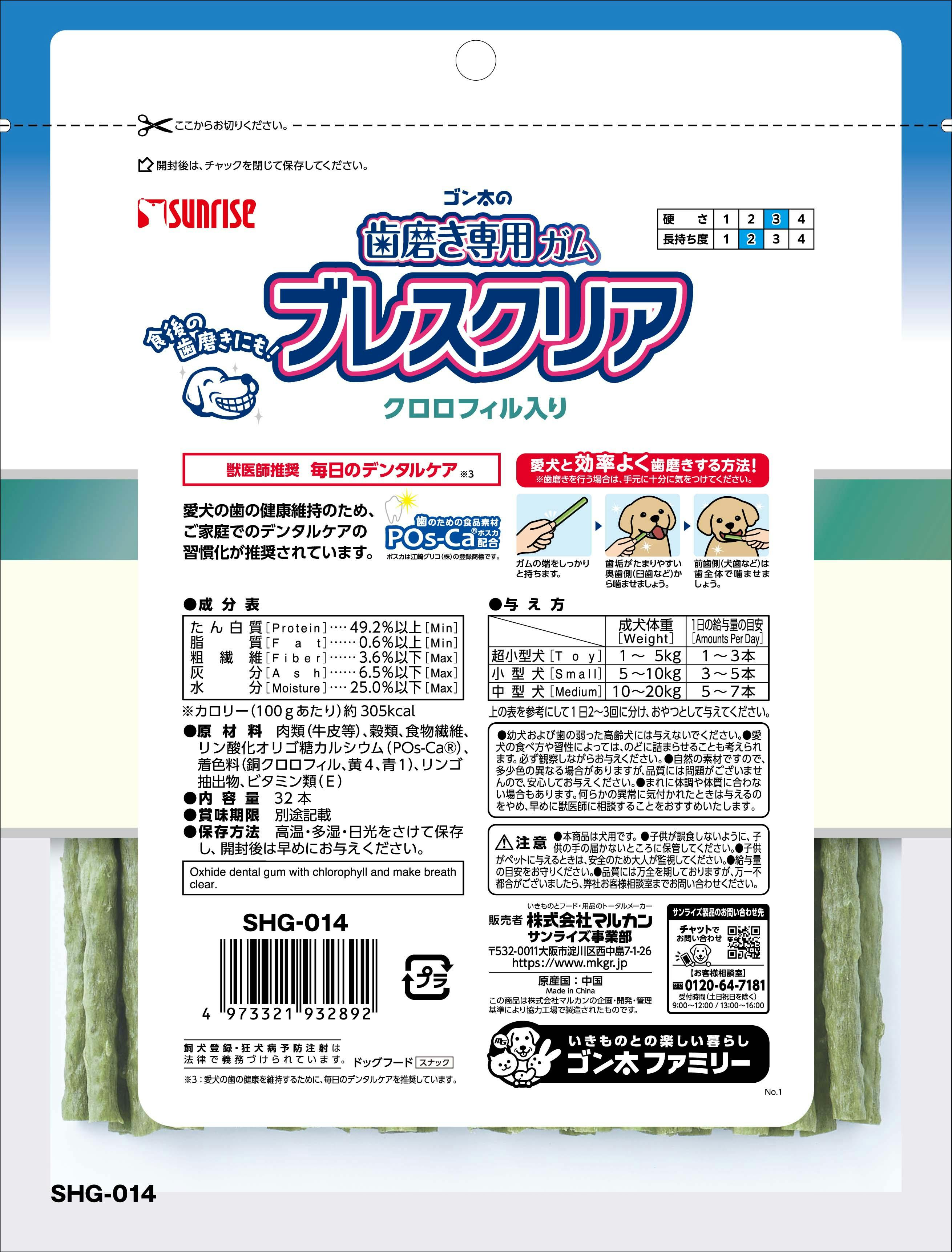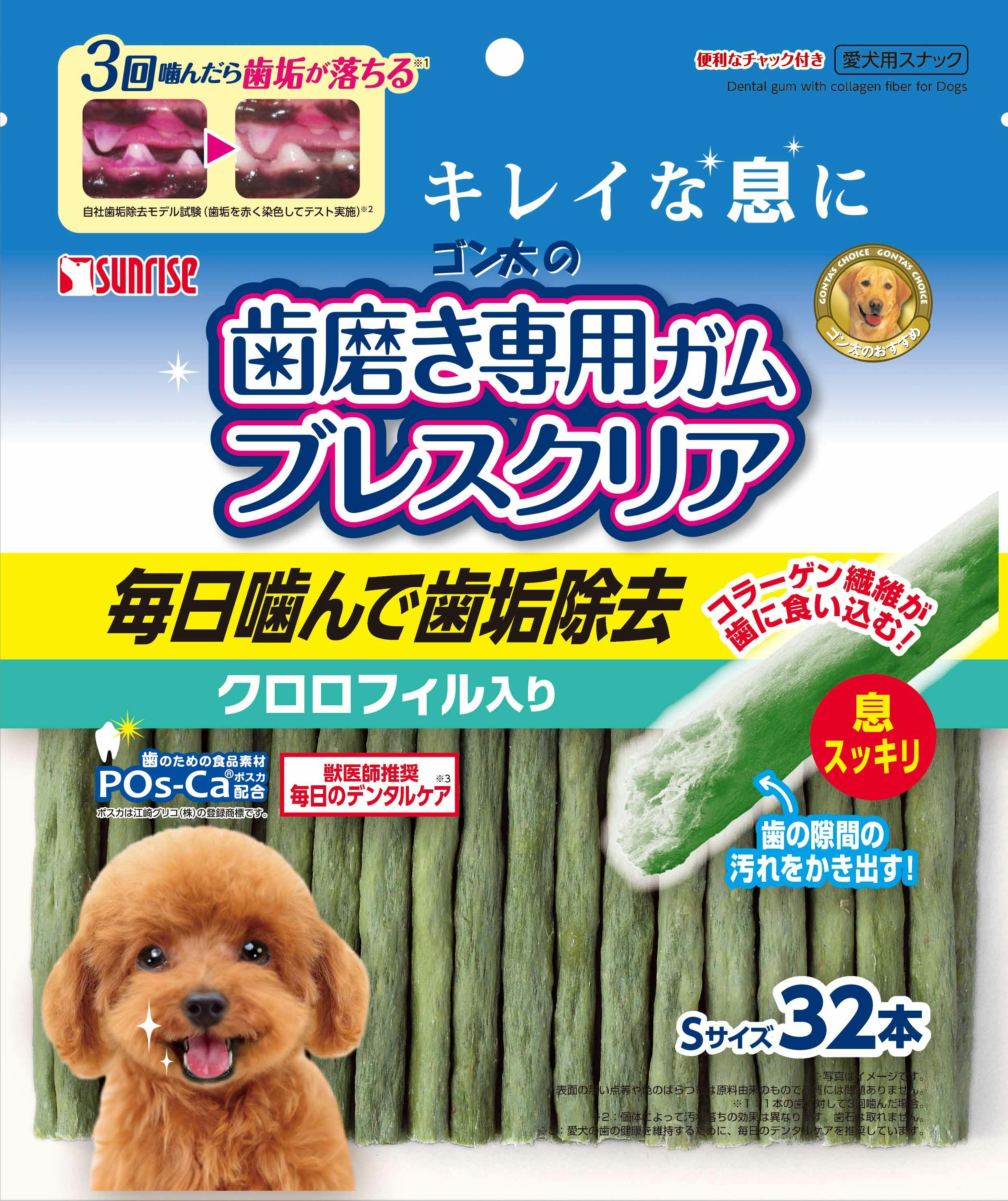 サンライズ ゴン太の歯磨き専用ガム ブレスクリア クロロフィルS32本 デンタルケア 4973321932892【別送品】