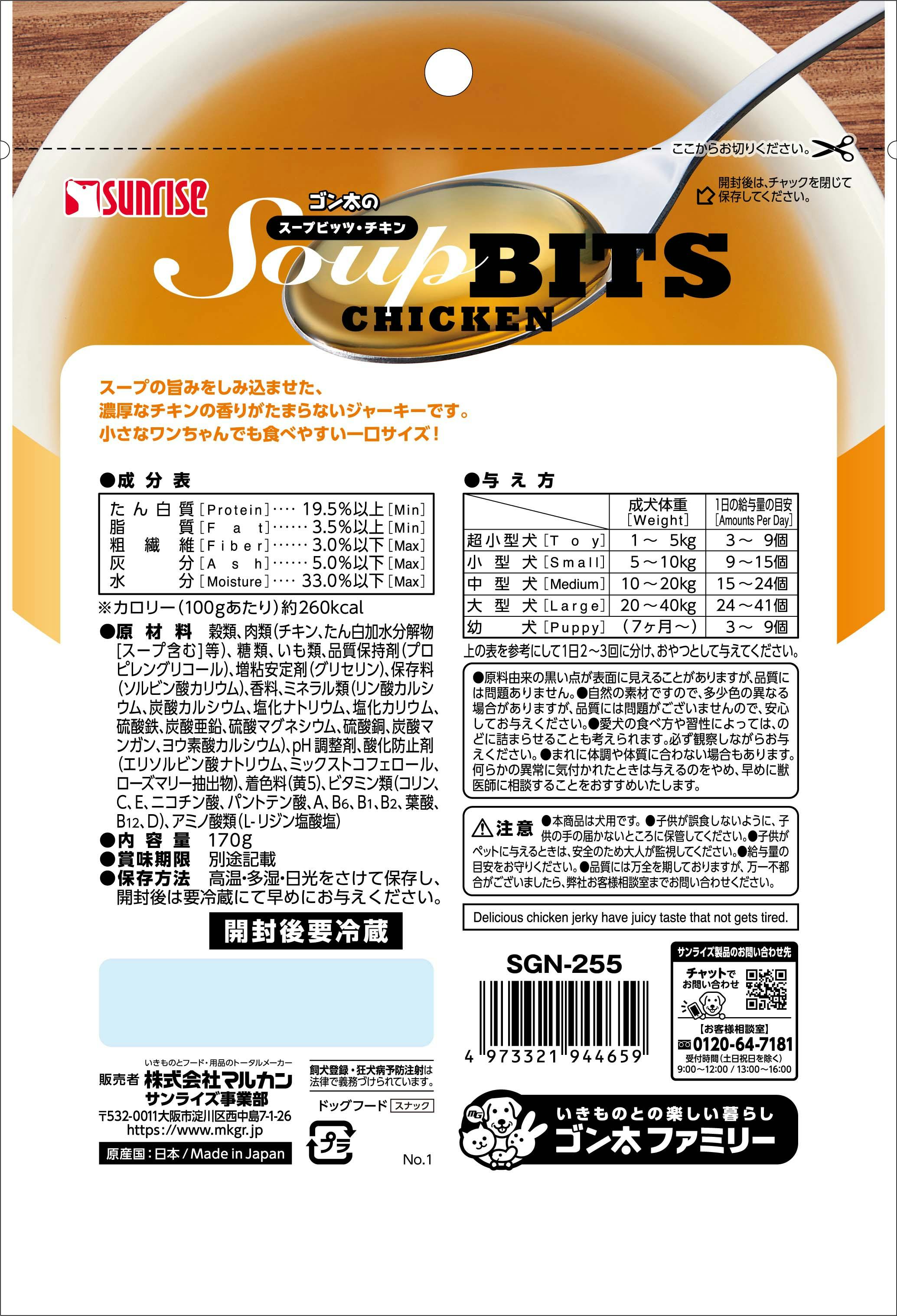 サンライズ ゴン太のスープビッツ チキン 170g ご褒美用 4973321944659【別送品】