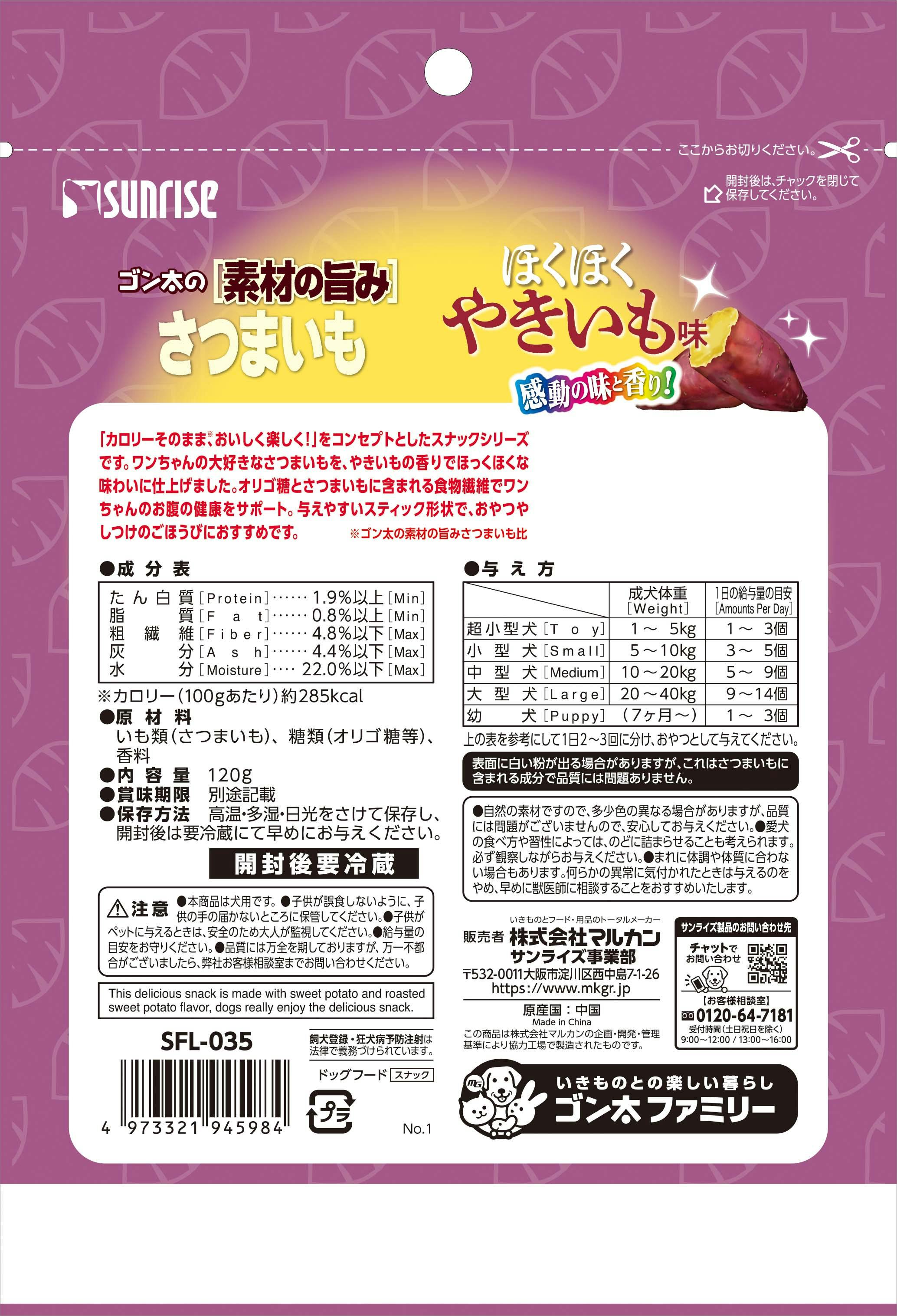 サンライズ ゴン太の素材の旨み さつまいも ほくほくやきいも味 120g ご褒美用 4973321945984【別送品】