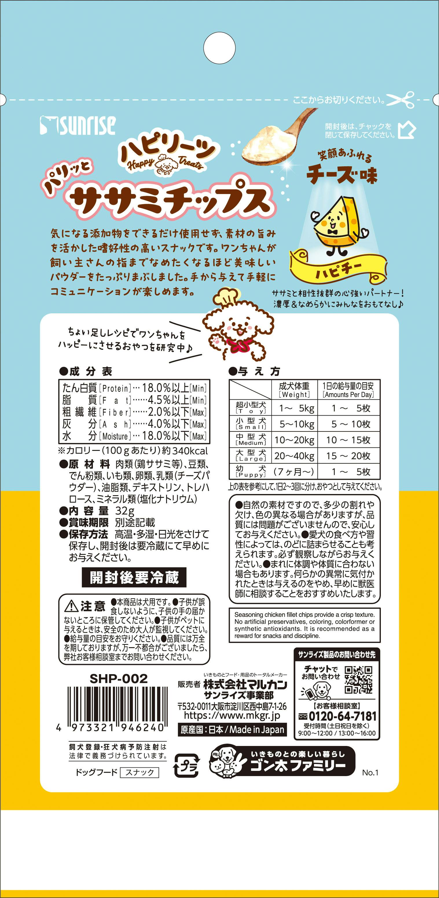 サンライズハピリーツパリッとササミチップスチーズ味32g ご褒美用 4973321946240【別送品】