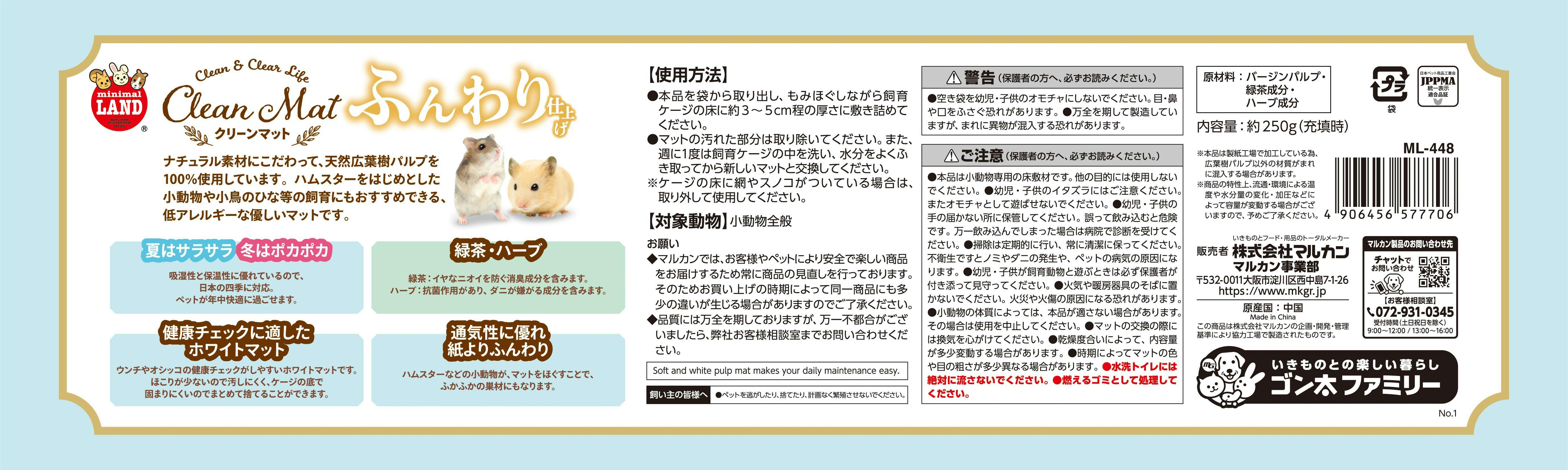 ML-448 クリーンマットふんわり 250g 床材 4906456577706【別送品】