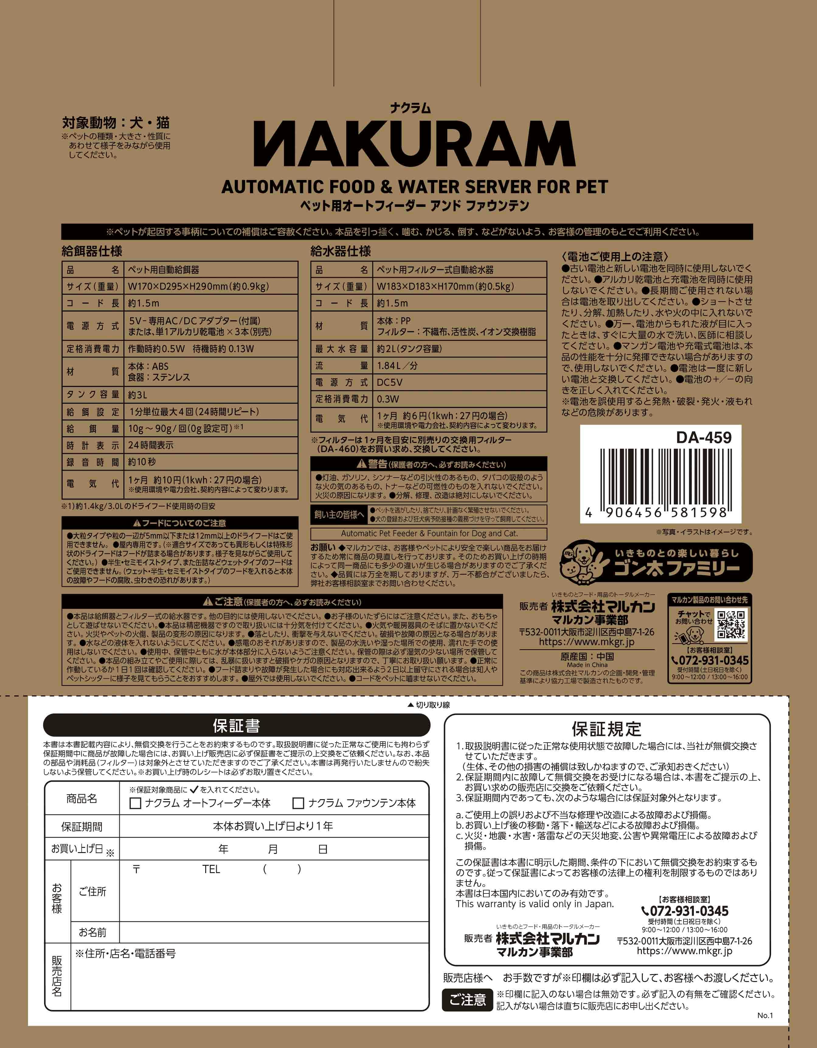 DA-459 ナクラムAF&ファウンテン 1組 食器セット 自動給餌器 静音設計 4906456581598【別送品】