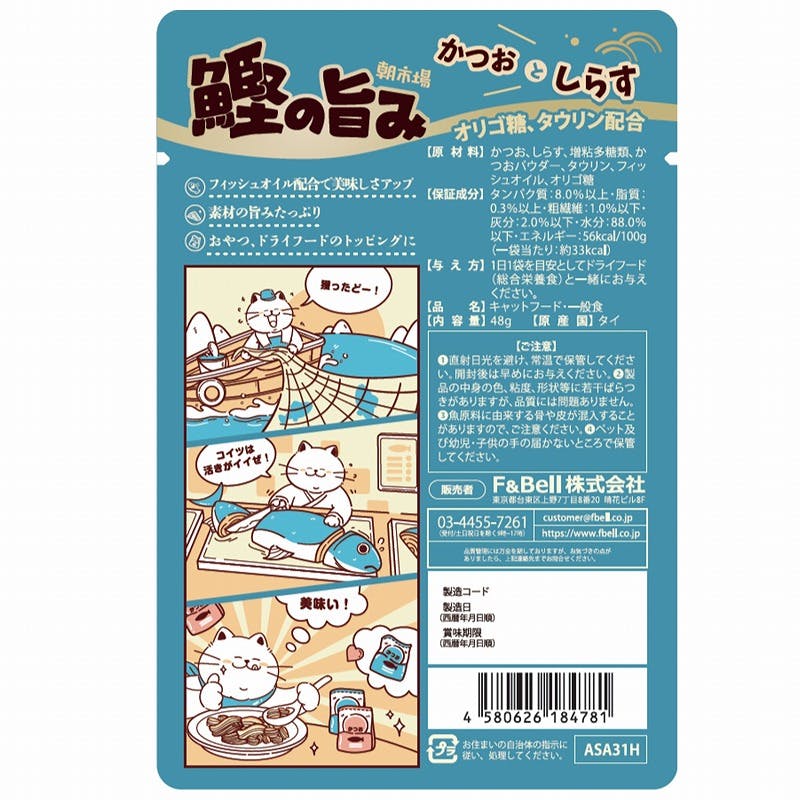 かつお、しらす、増粘多糖類、かつおパウダー、タウリン、フィッシュオイル、オリゴ糖・タイ