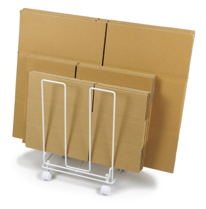 かさばるダンボールをスリムに収納。ヒモ通しスペースがあるので、そのまま結束できて便利です。スムーズに移動ができる全方向キャスター付。【サイズ】(約)幅305×奥行205×高さ435mm(キャスター含む)