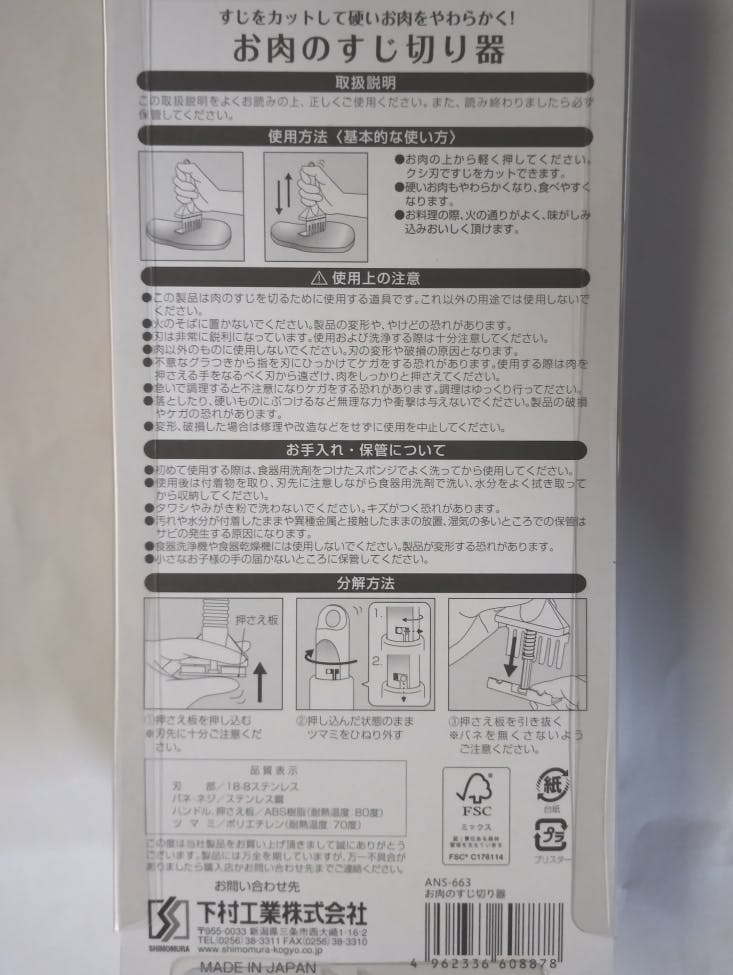 下村工業 味わい食房 お肉のすじ切り器 ANS-663 日本製 肉 筋 筋切 スジ切り カット 繊維 柔らかくなる サビにくい ステンレス 便利グッズ 4962336608878【別送品】