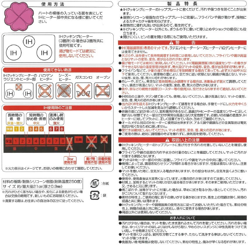 ボールの下に敷くことで、スベリ止めや、ショックの吸収に便利です。開けにくい瓶のふたを開ける際にもご使用いただけます。IHヒーターの汚れを防いでくれるので、掃除の手間がなく便利です。