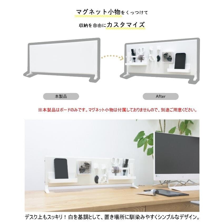 マグネット小物がくっつく収納ボードスタンド。簡単に組み立てできて、設置は置くだけ。お好みのマグネット小物でオリジナルの収納にアレンジできます。白を基調とした置き場所に馴染みやすく、シンプルなデザイン。