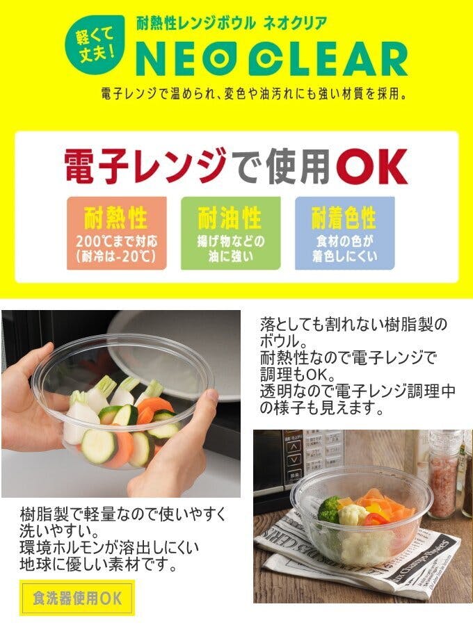 ネオクリア レンジボウル 19cm 日本製 ボウル 耐熱性レンジボウル 樹脂製 軽い 丈夫 電子レンジOK 食洗機OK シンプル おしゃれ 便利 キッチン用品 調理器具 4979487935852【別送品】
