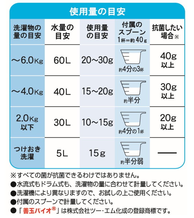 【内容量】(約)1.3kg×3箱※計量スプーン付き【用途】綿・麻・合成繊維用【液性】弱アルカリ性【成分】界面活性剤(0.5%ポリオキシアルキレンアルキルエーテル)、アルカリ剤、水軟化剤、分散剤、再汚染防止剤(カルボキシメチルセルロース)、酸素、植物性脂肪酸、消臭抗菌成分