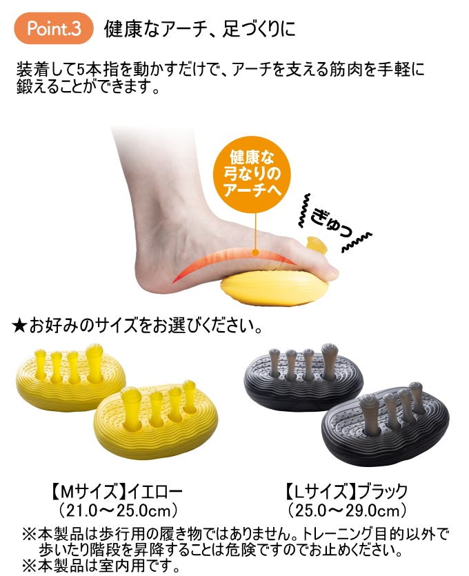 元サッカーU18日本代表フィジカルコーチが監修したトレーニンググッズ。足指のトレーニングでパフォーマンスの向上、ケガの予防に。足指を強化することは、重心の制御、反応速度、そしてボディコンタクトの強化につながりますので、競技において非常に有益です。競技スポーツだけでなく、ジョギングやウォーキング、トレッキングなどのアクティビティにもおすすめです。
