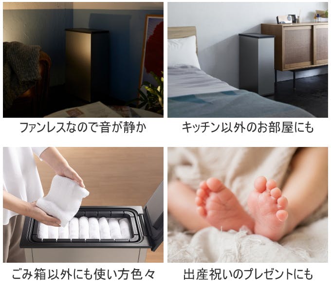 家庭の生ゴミや乳幼児の紙おむつ、ペットシーツなどのいやな臭いをマイナス11度で凍らせ、根本的にシャットアウトできます!週2回のゴミ捨てサイクルを想定して、余裕が持てるたっぷりの20Lサイズ。紙おむつなら約30個入る設計でありファンレスなので音が静か。ほとんど気になりません。キッチン以外のお部屋にも、寝室やガレージなどコンセントがあればどこででも冷やせます。