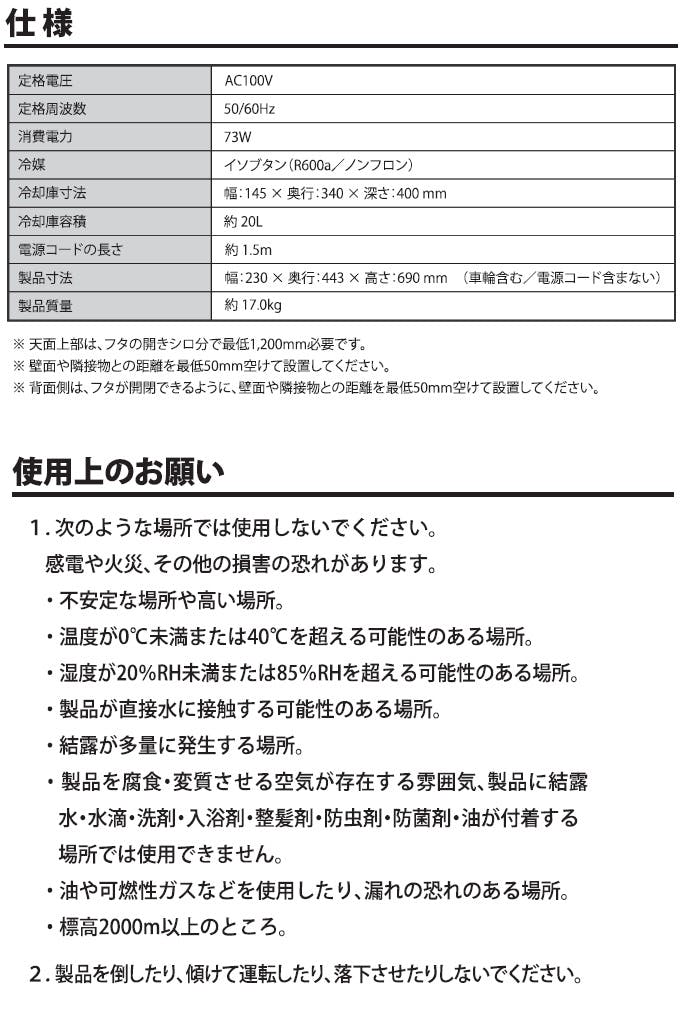 ■キャスター付き■定格電圧:AC100V 50/60Hz■消費電力:73W■電源コード:(約)1.5m■容量:(約)20L