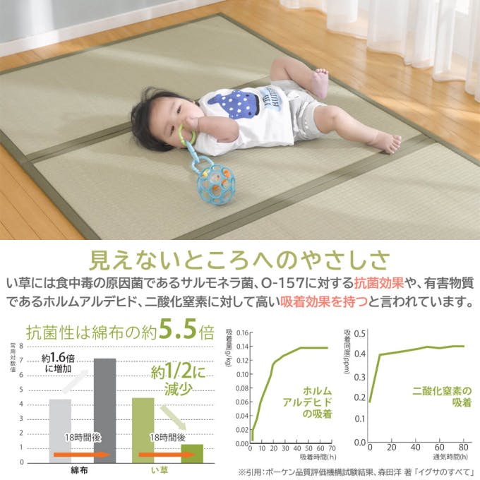 【材質】表地:い草100%、中身:フェルト、裏地:不織布・エンボススリップ、縁布:ポリエステル【原産国】中国(企画・デザインは日本)