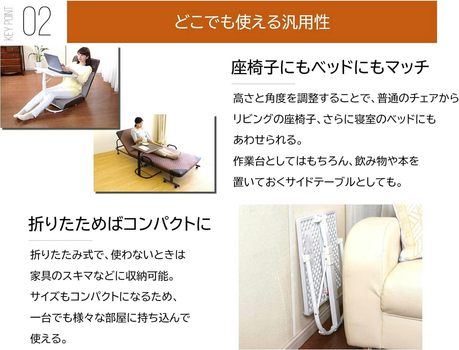●使用時:幅44.5×奥行45×高さ70.5/64.5/58.5cm●折りたたみ時:幅44.5×奥行8×高さ58cm●天板:縦43×横43cm●高さ:調整3段階機能付き●角度:調整3段階機能付き●重量:約2.8kg●天板耐荷重:約25kg