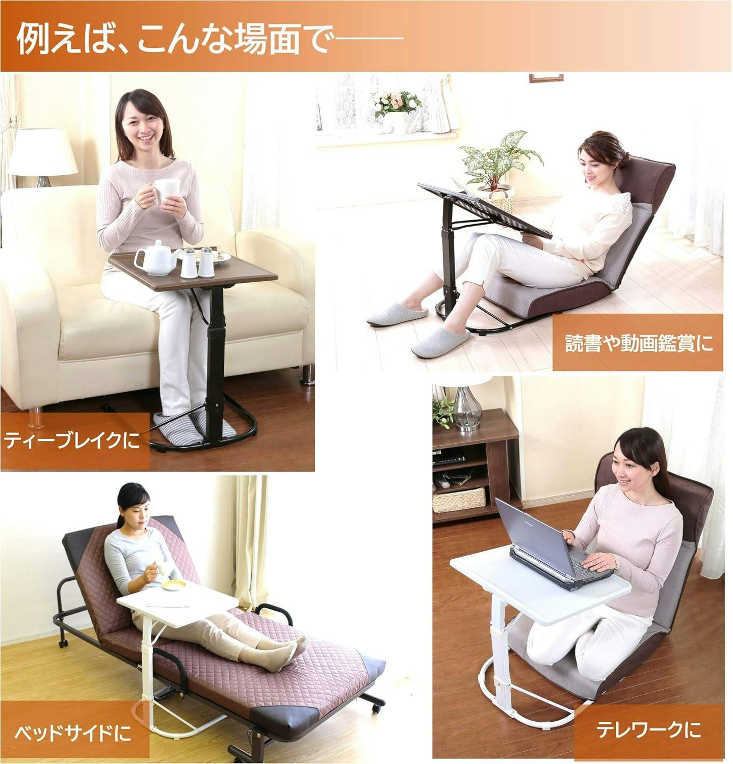 タック Vita 折り畳みマルチテーブル 高さ調整 角度調整 作業台 折り畳みテーブル 木目調 ベッドやソファのサイドテーブルとして便利!コンパクトに折り畳める木目調天板のテーブル。 4560258456975【別送品】