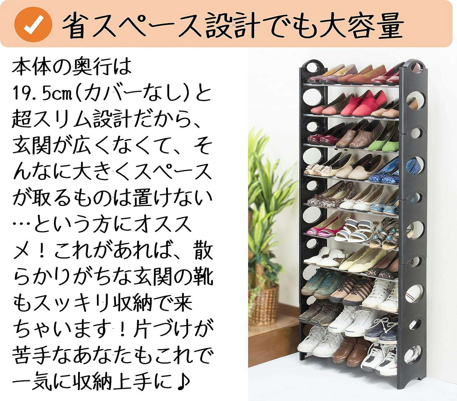 タック Vita シューズラック カバー付き 10段 ブラック TAN-846BK スリム設計なのに、30足も収納可能なシューズラック。カバー付きで目隠しや汚れ対策もバッチリ! 4560258458283【別送品】