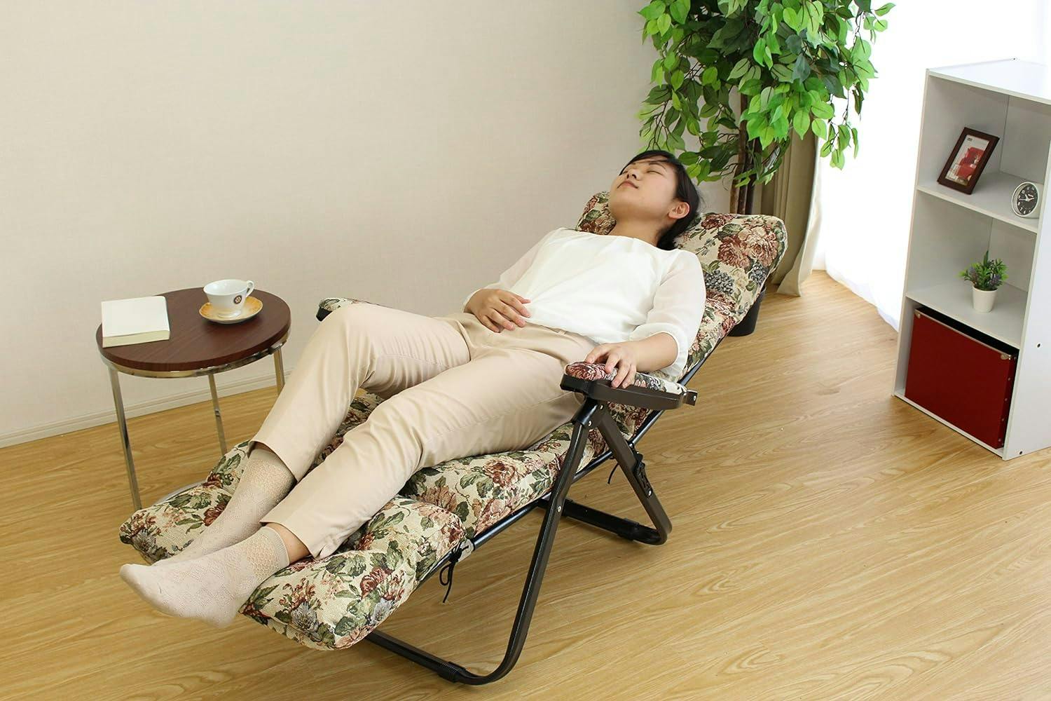 ●サイズ 約幅65×奥行87~146×高さ65~102cm●素材 構造材:スチールパイプ(エポキシ樹脂粉体塗装)●素材 表地:ポリエステル100%●素材 裏地:ポリエステル100%●素材 中材:ウレタンフォーム・鋼製バネ(鋼製S字型単バネ)●機能 背もたれリクライニング:6段階●機能 脚部リクライニング:14段階●機能 耐荷重:80kg