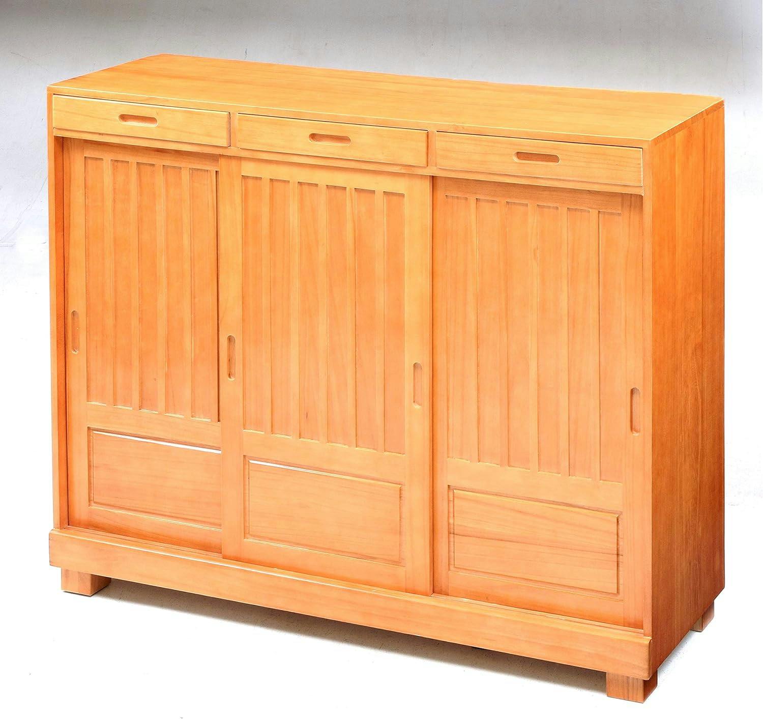 ●材質:桐(ラッカー塗装)、天然木化粧合板●本体サイズ(約):115×38×95cm●引き出し内寸(約):34.2×32.7×5cm●脚部(約):6×6×10cm●床下高さ(約):5cm●重量(約):20.9kg●棚板数:11枚●収納可能 靴数(約):28足