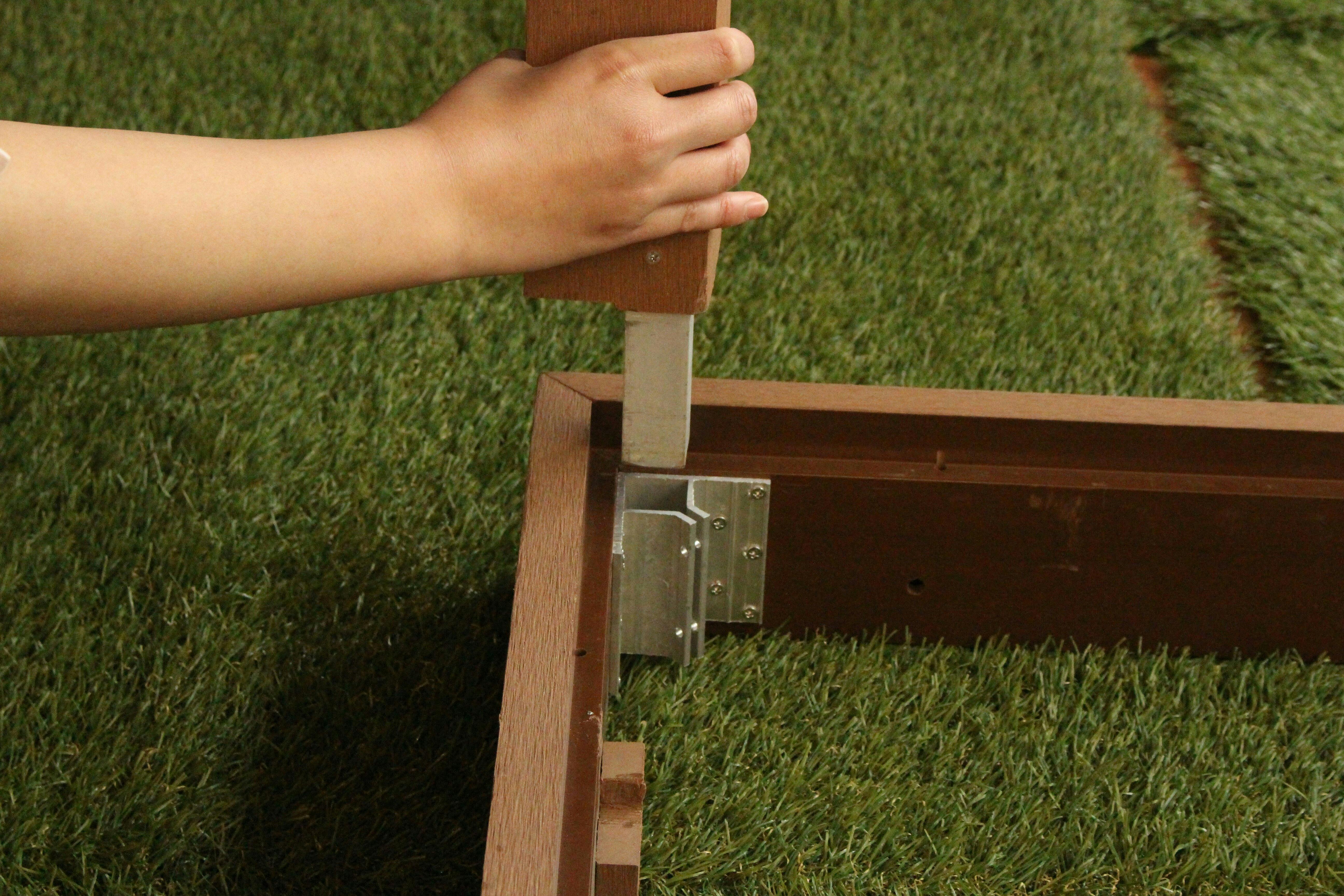 人工木なので水に強くはじくため汚れても水洗いが可能で、強い日差しでも色の変化が少なく、防腐処理やシロアリ対策など天然木に必要なメンテナスがいりません。組み立てが簡単なので同じシリーズのウッドデッキやステップ、フェンスと組み合わせてオリジナルのウッドデッキが作れます。