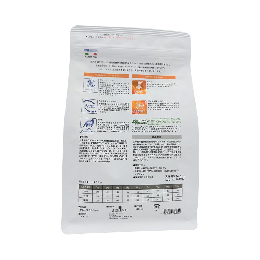 MONGE ベッツソリューション 猫用腎臓サポート 400g 食事療法食 4582559383040【別送品】
