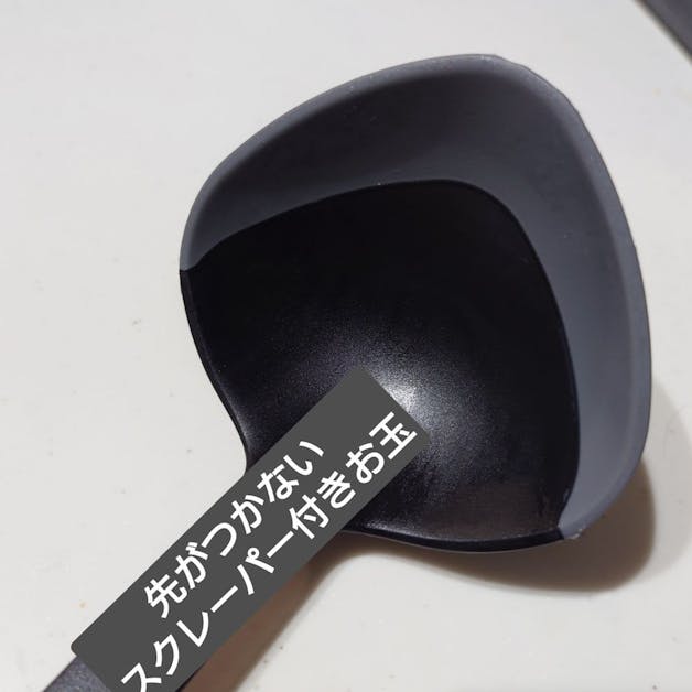 先がシリコーンになっているお玉。一見柔らかくて心もとないですが、その素材が鍋の隅にジャストフィット!キレイに食材をすくってくれます。 「もったいない」を減らすことはもちろん、洗い物も減って一石二鳥。食材を掬って救う、頼もしい存在です。 ちなみに、先端が接地しないような工夫がされており、料理中の置き場にも困りません。