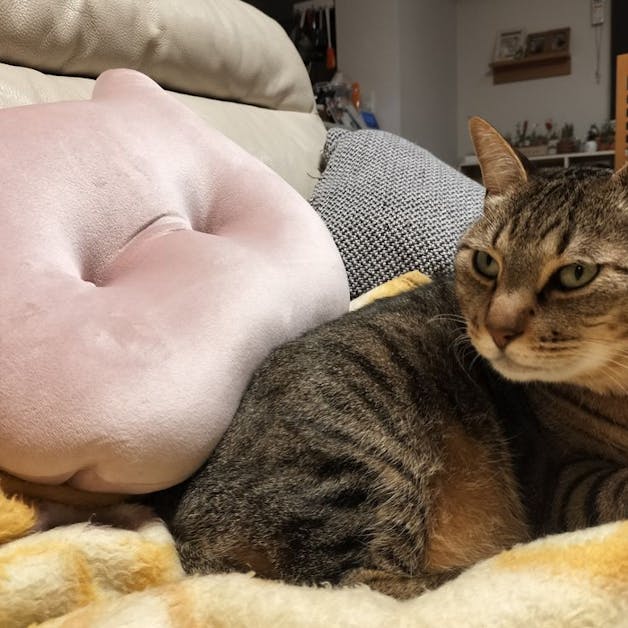 にゃん祭りにつられて、店内でこの猫型のクッションの形と色に一目惚れして即購入しました。家のソファーにおくと、我が家の猫ちゃんも気に入ったらしく、顔を埋めたり、背中をくっつけていつも一緒に寝ています。ソファーの居心地がアップしました。