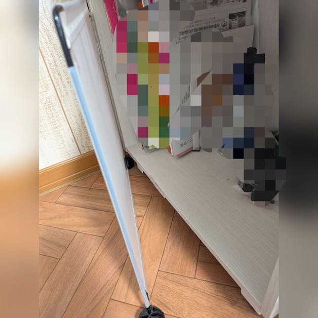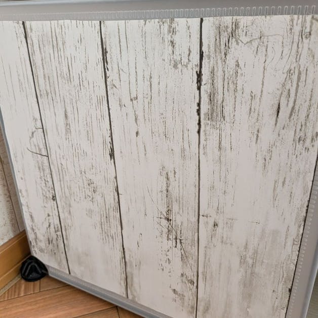 カラーボックスの下部。我が家のワンコのイタズラ防止に簡単な柵のような扉を設置しました♫ 使っていなかったパネルをはじめは立てかけてガードしていましたが、倒れてしまうので、コアラテープを使用しました。 コアラテープは何回も繰り返し付け外し固定できるという特性がありますので、こういった軽度なものに最適だと思います。 ほこり、砂汚れは水で洗って再利用できるのもいいですね。