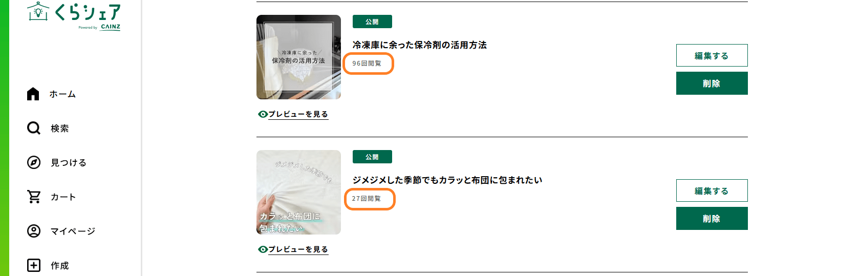 投稿がどれくらい見られているかなどはマイページの投稿一覧からご確認いただけます。