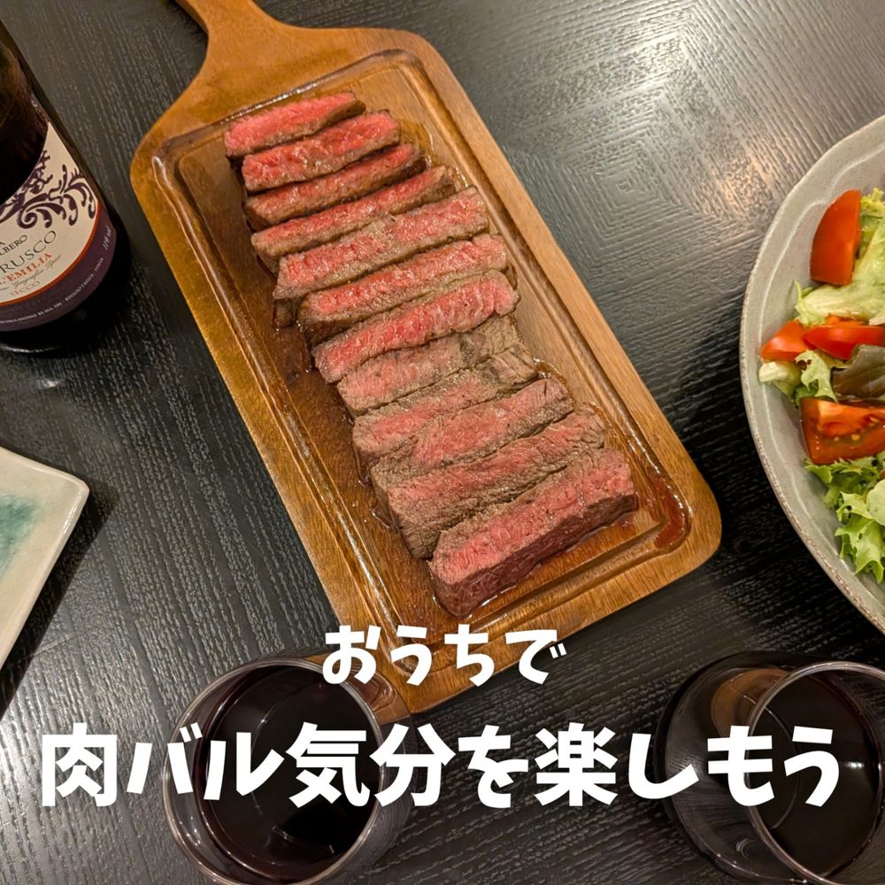 天然木でできたカッティングプレートを購入したので、週末の夕食で早速使ってみました! レア気味に焼いたお肉をカットしてそのままプレートへ盛り付けると、乗せただけでおしゃれ感アップ🥩✨ プレートの周りには溝があるので、肉汁がこぼれにくいのも嬉しいポイント👍 カジュアルなワインタンブラーも用意して、赤ワインとともに肉バル気分を満喫できました♪