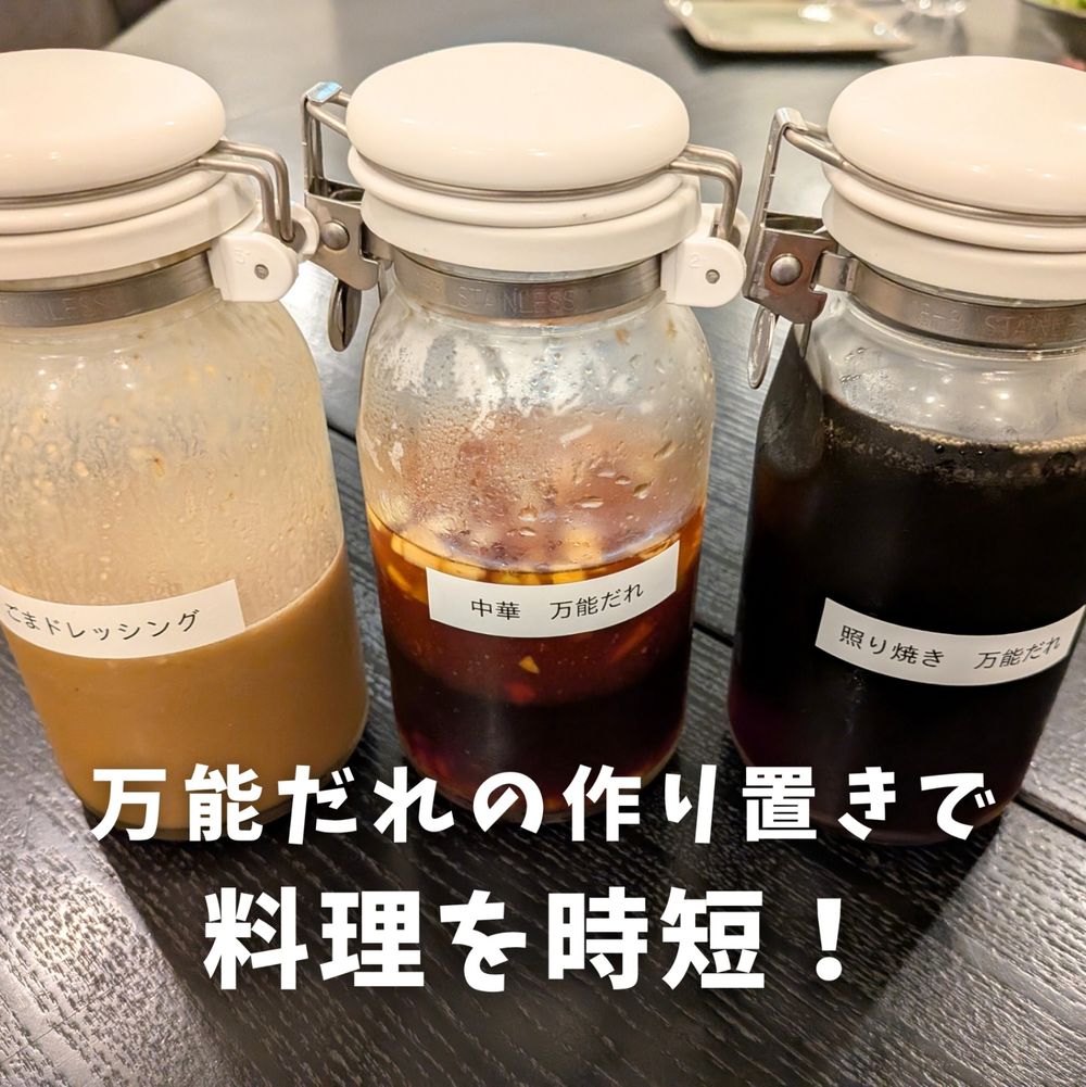 毎日のごはん作り、味つけを考えるのが大変…😵 そんな時に便利なのが“万能だれ”の作り置き! 今回使った液体調味料ボトルならワンプッシュでラクに注げて、洗いやすいのも嬉しいポイント👍 テプラで作ったラベルを貼れば、冷蔵庫の中もすっきり整います。 照り焼き、中華、ごまドレッシングと使い分けて、日々のごはんづくりが時短になりました✨