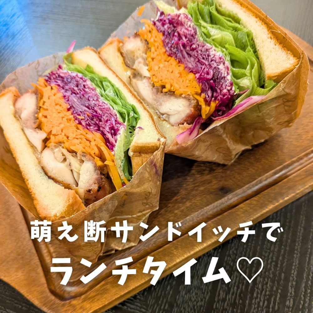 休日のランチタイムは、カフェ気分を味わえるおしゃれなランチを作ってみたい🍞! そんな時は彩り野菜とジューシーなローストチキンで作る“萌え断サンドイッチ”がぴったり。 キャロットラペや紫キャベツのマリネで野菜もたっぷり🥕 ワックスペーパーで包んでからカットするから失敗しにくくて◎ パン切包丁は切れ味が良くて断面がキレイに切れました✨ おうちでゆっくり楽しめる休日のランチタイムに大満足です♪