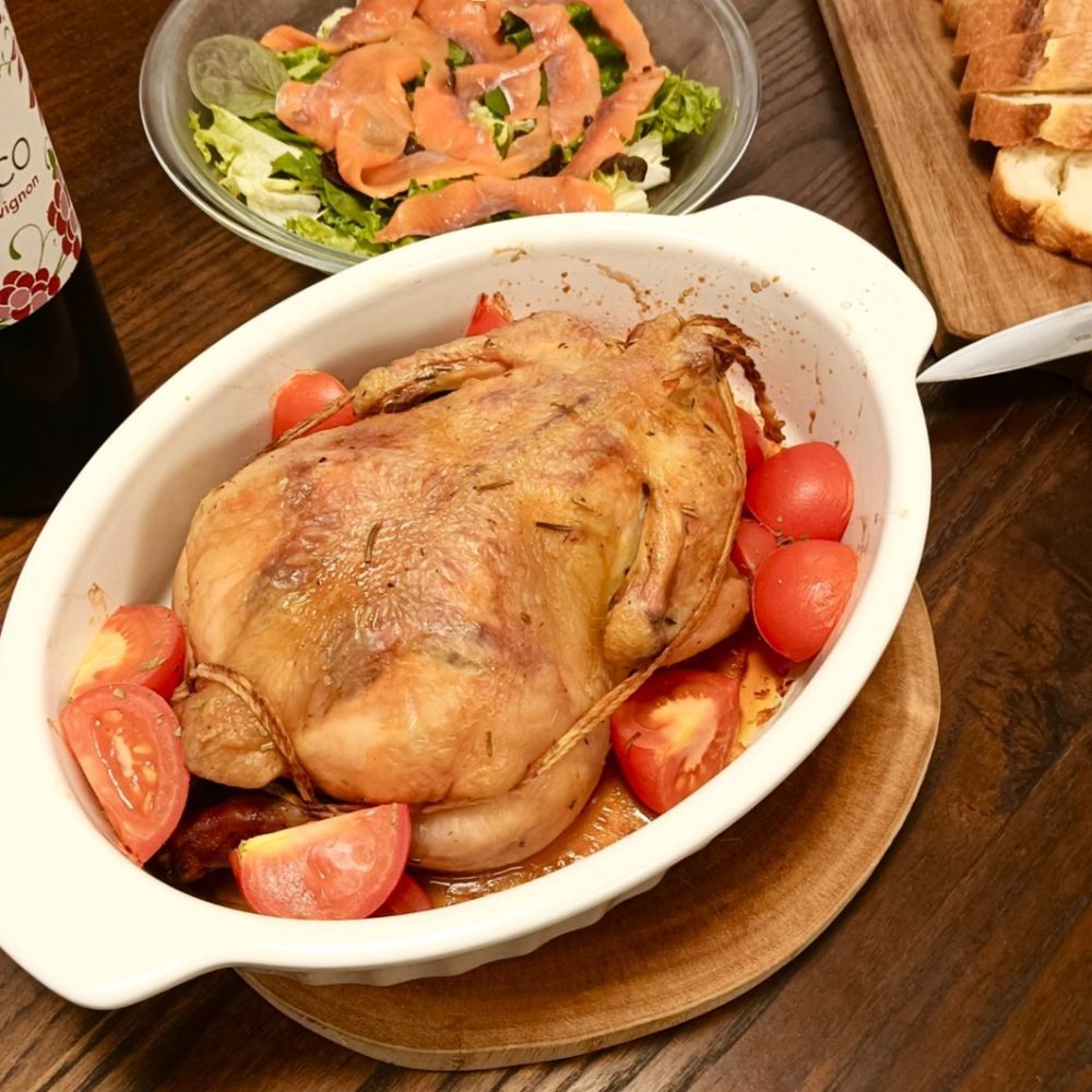 クリスマスにオーブンでチキンを焼きました。 表面いい感じだけど生焼け…。 中まで火を通してたら焦げ焦げ…。を避けるため ヘビロテしてるクッキングシートが活躍してくれました。 いい色に焼けてるけどまだ焼き足りない時に、カバーとして被せることで焼き色の付き過ぎを防いでくれます。 出来のいいチキンで気分良くクリスマスのディナーを楽しめました✧