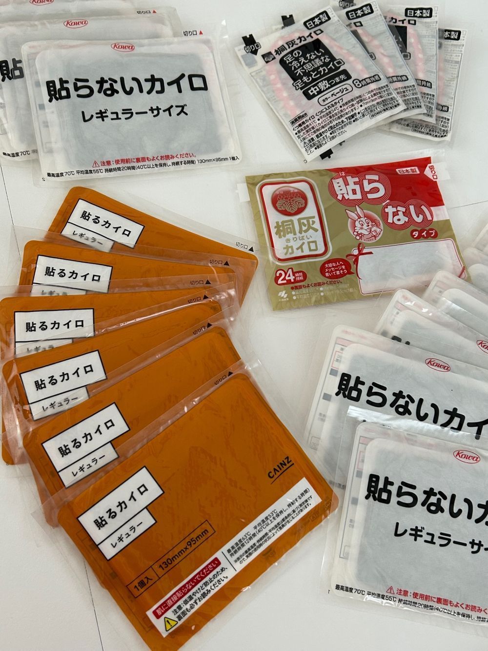 貼るカイロ、貼らないカイロ、くつ用と、寒さに備えて揃えています。 一日中外にいる時にはお腹に一枚、背中に一枚の合わせ技。長時間でも冷えずに過ごせます。 地域に回収ボックスが設置されたので気掛かりだった環境負荷の心配もなくなりました。(水質浄化剤や土壌改良剤になるようです)