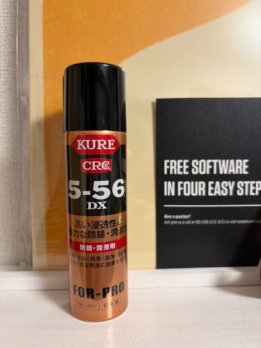 引越しのタイミングで、整備できていなかった機械や、自転車、車など、色々なものの防錆、潤滑油として、クレ5-56DXを買いました! 潤滑油といえば、556というほど頭に染み付いてます笑 いつも一本使い切らないので、今回はDXにして容量を減らしつつ効果が良さそうなので試していきたいと思います!とりあえず、整備したものたちはピカピカになりました🤩