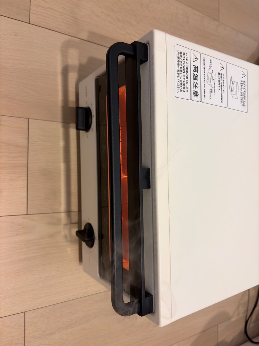 カーボンヒーターは、石英管(価格帯が安いトースターに使われてる)より、素早く温まるから、せっかちな自分にピッタリ🤩 また扉の持ち手部分は、各社工夫しているけど、カインズのは扉からも距離を保ちつつ、隙間が多い設計になってた❤️🔥 最初、最低限の探してたから、少し価格帯は高く感じたけど、それに見合う機能は搭載されてるかも。パンくずトレーもついてるし、掃除しやすい。デザインもザ・シンプルで白も黒もあるからインテリアに馴染ませやすい!