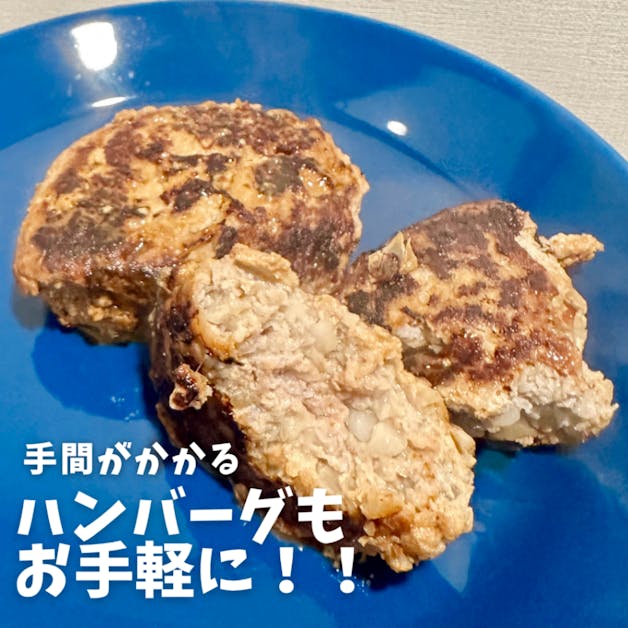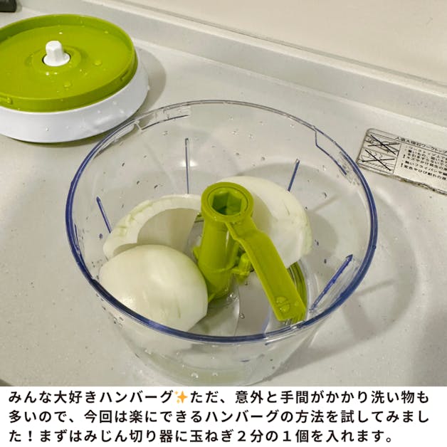 洗い物が多くて手間なハンバーグ作りも、ちょっと工夫でグッとラクに♪ みじん切り器で玉ねぎをパパッとカットし、材料は全てポリ袋で混ぜて洗い物を最小限に✨ 成形もフライパン上でサッと整えて焼くだけ! 酒を加えて蒸し焼きにすれば、ジューシーな仕上がりに◎ 手間がかかりがちなハンバーグが驚くほど簡単にできました☺