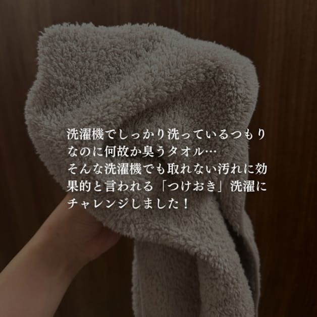 洗濯機で洗ってもイヤなニオイが残るタオル…そんな頑固な汚れ対策にぴったりなのが「つけおき洗濯」! 酸素系漂白剤をぬるま湯(約40℃)2Lに20〜30g溶かして、30分つけるだけ。色柄物をまとめてつけてもOKで、とっても手軽✨ その後は、手動脱水グッズのホースから水を出して脱水→洗濯機で通常洗いすれば…タオルの嫌なニオイがスッキリ消えて気持ちいい仕上がりに😊これなら快適に使い続けられそうです!