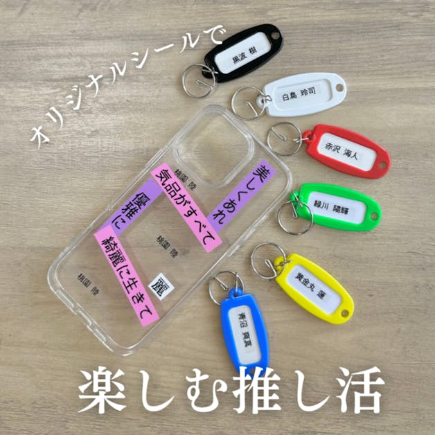 楽しい推し活をもっと満喫するために、オリジナルの推しグッズ作りに挑戦しました! まずはメンバーカラーのキーホルダーに、手作りの名前シールを貼ってオリジナルキーホルダーが完成✨ 友達とお揃いにするのもおすすめです◎ さらにスマホケースには推しカラーのテープと名前・名言シールを組み合わせて、自分だけの推し活スマホケースに! 簡単アレンジで気分が上がるアイテムができて大満足です♪