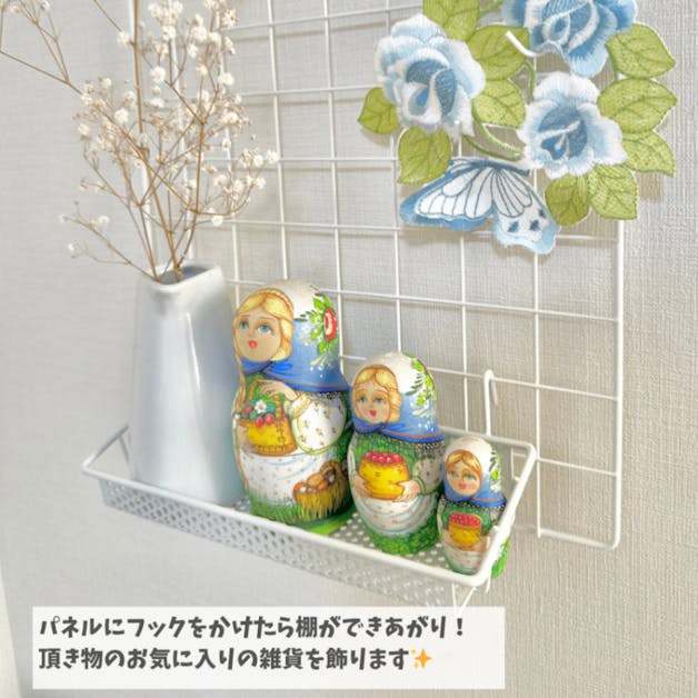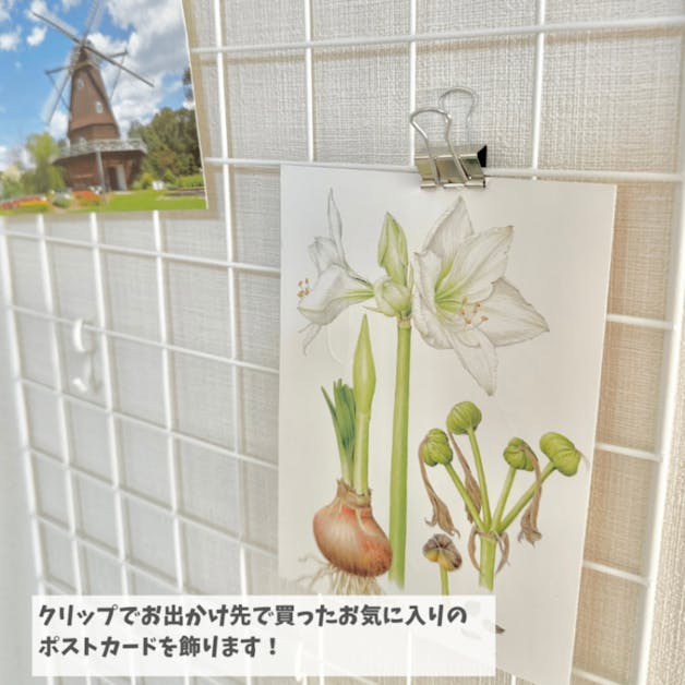 お気に入りの雑貨やポストカードを“見せる収納”で楽しむため、白のワイヤーウォールをDIY✨ 壁になじむ色&軽さで扱いやすいパネルを今回はチョイス。 石膏ボードフックで穴も目立ちにくくて安心! 棚やS字フックで自由にアレンジできて、引き出しに眠っていた推しグッズも大集合😍お部屋がもっと好きになりました💕