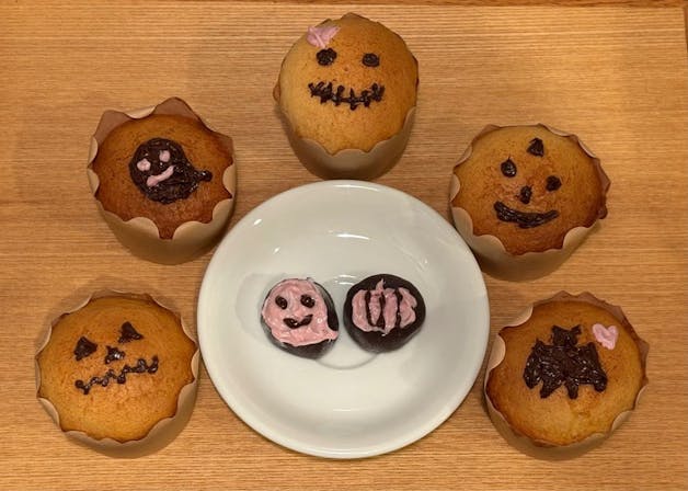 マフィンとチョコもちをハロウィン仕様のデコレーションに🎃 チョコレートのデコペンを使いこなせず微妙な仕上がりになってしまいましたが😂 おやつの時間が少し華やかになりました✨ (注:デコペンはスーパーで調達しました)