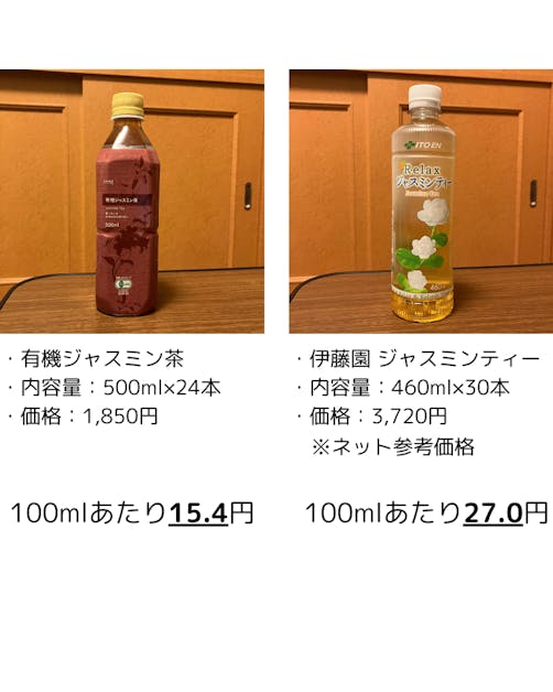安いという理由だけで普段好んで飲んでいましたが、「有機」というキーワードについて気になったので、簡単に調べてみました! 「有機」って良く耳にするけど、パッと意味を答えられる人はいないのでは…? 簡単に言えば、人々の体に良い材料で加工されているもの! 今回は伊藤園のジャスミンティーと飲み比べてみましたが、香りがより強く濃いめの味でした👍 皆さんも是非飲んでみてはいかがでしょうか!