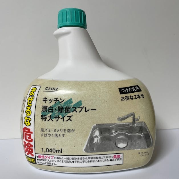 こちらは泡で出てくるタイプの塩素系漂白剤です。キッチンのシンクの排水溝のヌメリ取りによく使っています。泡で出てくるので、汚れた箇所にピンポイントで密着してくれて、効率よくラクに掃除ができるようになりました。